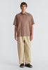 This mens short sleeved cotton shirt is cut in a relaxed oversized fit for the ultimate comfort and ease. Featuring elbow length sleeves, a simple folded collar and a button through placket, this piece is sure to become a warm weather favourite worn as is or over tanks and tees.