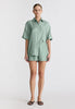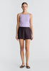 Rendered in a pure silk, these mid waisted shorts are lightweight yet structured. Featuring a gathered waistline with fine drawstring ties, side seam pockets, this pull-on style is designed for comfort and ease. Work back with soft silk oversized shirts, or pair with rib tees and tanks to accentuate the silhouette.