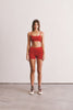 Streamlined for efforteless wearability, these womens shorts showcase ribbed details for subtle sculpted lines. The fitted shape features a high waisted line that flows into a mid thigh length hemline. Style with the matching bralet.