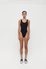Superfine Merino wool seamless rib bodysuit in signature Nagnata rib with iconic Nagnata houndstooth artwork at both sides. This style features a low scoop back, thong-style bottom, and high cut leg. The signature fabrication has a super-soft second-skin feel against the body and offers mid compression for support.