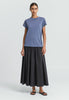 A modern take on the everyday tee, cut from a softly textured rib, blending soft cotton with a hint of stretch for comfort and shape. With cropped sleeves and a clean crew neckline, it’s a sleek base layer that is both simple and considered