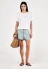 This linen tee is the essential every wardrobe needs. Cut from a soft yet weighty linen jersey in a petite cropped fit - this piece falls just past the waistline with a crew neck and capped sleeves. Contrast the silhouette with relaxed tailoring for an easy off duty look. This piece is designed for a neat fit. For a more relaxed look take the next size up.