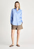 This shirt was crafted in Ghostcel, a luxe specialty cotton/ linen created in premium Portuguese mill chosen for its unbeatable summer performance and unique feel. This elbow length sleeve, cropped shirt features a subtle check pattern and a relaxed fit for laid-back style with a touch of texture. Lightweight and versatile. Perfect for layering or wearing solo.