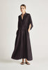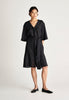 - Central functional buttons, neckline and covered placket detail, seperate tie belt