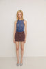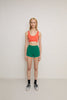 Superfine Merino Wool blend knitted mini shorts with intarsia side and hem stripe and rib waistband. Features colourblock striped panels at side seam and bottom hem. This garment is fully fashioned/engineered to shape, meaning there is minimal yarn wastage during the production process.
