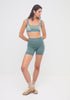 Superfine high-waisted Merino wool seamless knit rib mini short made in Nagnata's signature seamless fabrication offering mild compression for support and breathability. The style features a double layer waistband with jacquard Nagnata logo on front and back waistband. Crafted in Nagnata's signature Nagnata rib, these shorts include contrast jacquard stripe placement artwork.