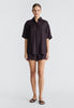 A modern approach to the classic silk shirt, this piece features a classic collar, button down placket, and slightly oversized sleeves. Cut from silk twill with a soft lustre, this women's silk shirt balances the natural drape of a fluid fabrication with a boxy cut. Style back with matching silk shorts for an easy, elegant ensemble.