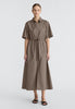 An effortless piece of timeless appeal. This maxi length dress features a full skirt shape with an open collared neckline. With wide sleeve details that fall to elbow length, adjust and cuff for a more casual look.